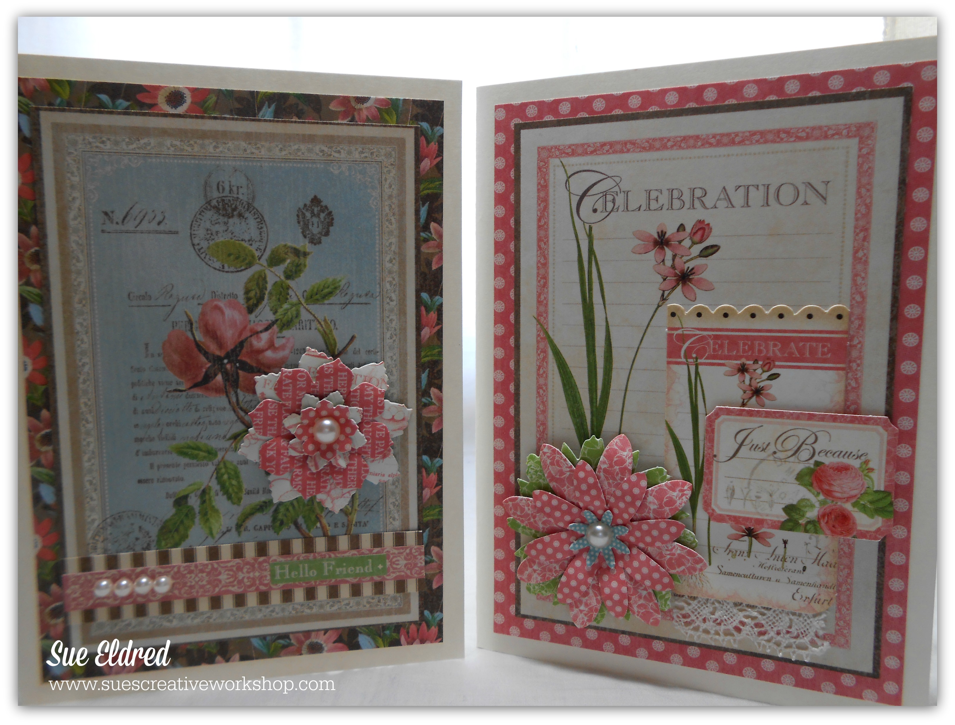 These are the cards we made in my Graphic 45 Botanical Tea Card and Tag Class at The Paper Forest.