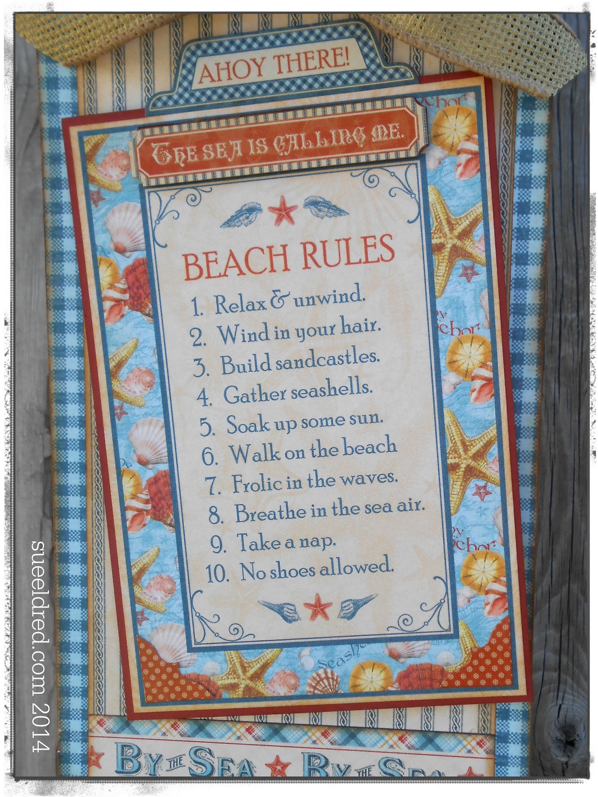 I used the fifth page in the album to create my “Beach Rules” wall hanging.