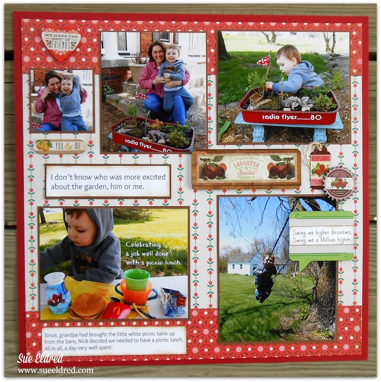 I knew as soon as I saw the pictures from “Nick and Grandma’s Mini Garden”, our special project, they would make wonderful scrapbook pages. (see the original post here) Lucky for me, my design team packet for The Paper Forest was the garden themed collection “Herbs & Honey” from Basic Grey.