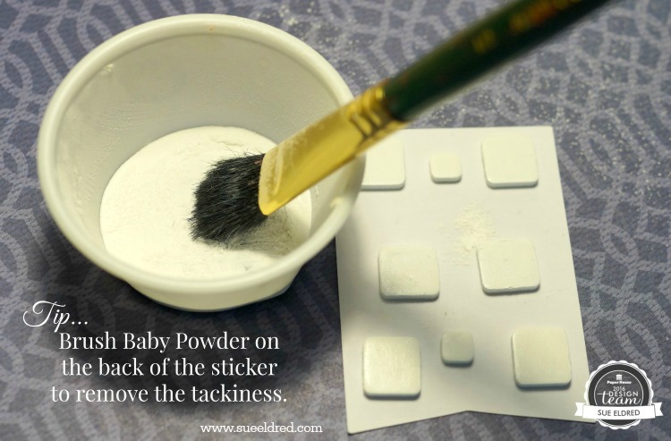 to make a sticker non-sticky, apply baby powder on the back of the sticker with a paint brush.