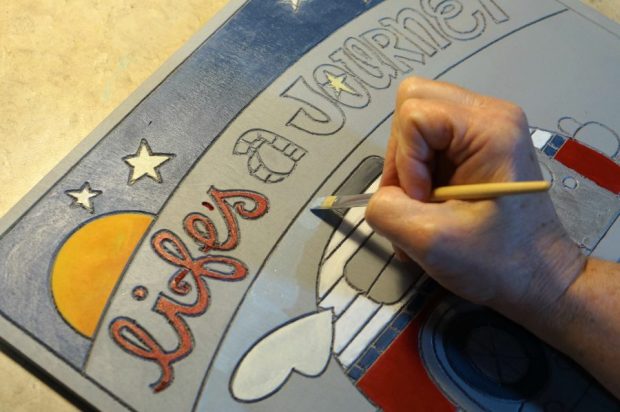 I started with this plain life’s journey plaque from ADORNit. (measures 11″ x 13″)