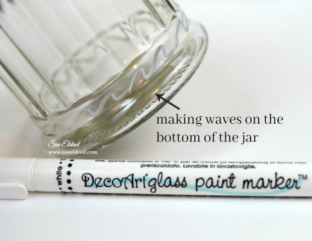 On the bottom of the Parmesan Shaker, create the look of waves with the DecoArt Glass Paint Marker, White*