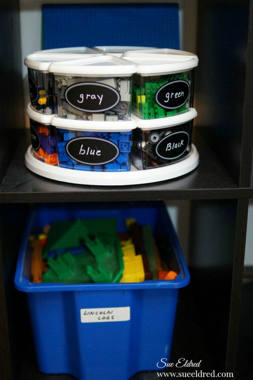 I used the Deflecto Rotating Carousel Organizer* for my Lego storage. (the boys love it)