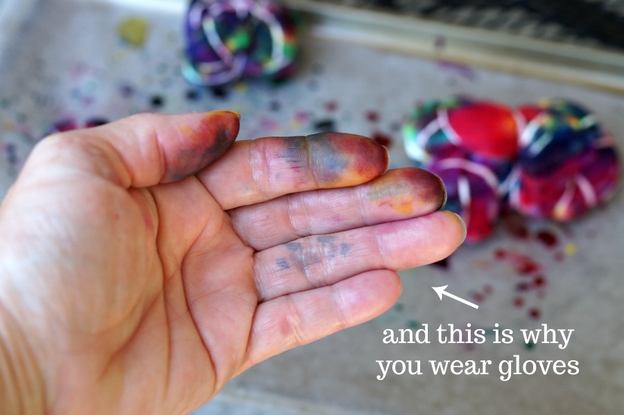 - First, I just squirted dye directly onto the socks. (red and blue pair)
