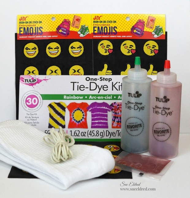 To make the Tie-Dyed Emoji Socks this is what you’ll need…