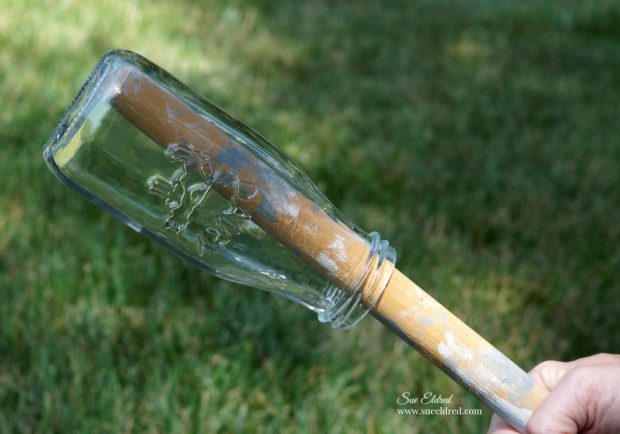 Great idea of using the handle wrapped with paper for holding the vase. Painting a bottle is always a challenge.