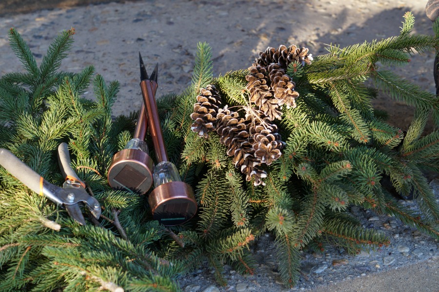 I used my Fiskars Pruning Shears* and went around the yard and cutting sprigs of pine