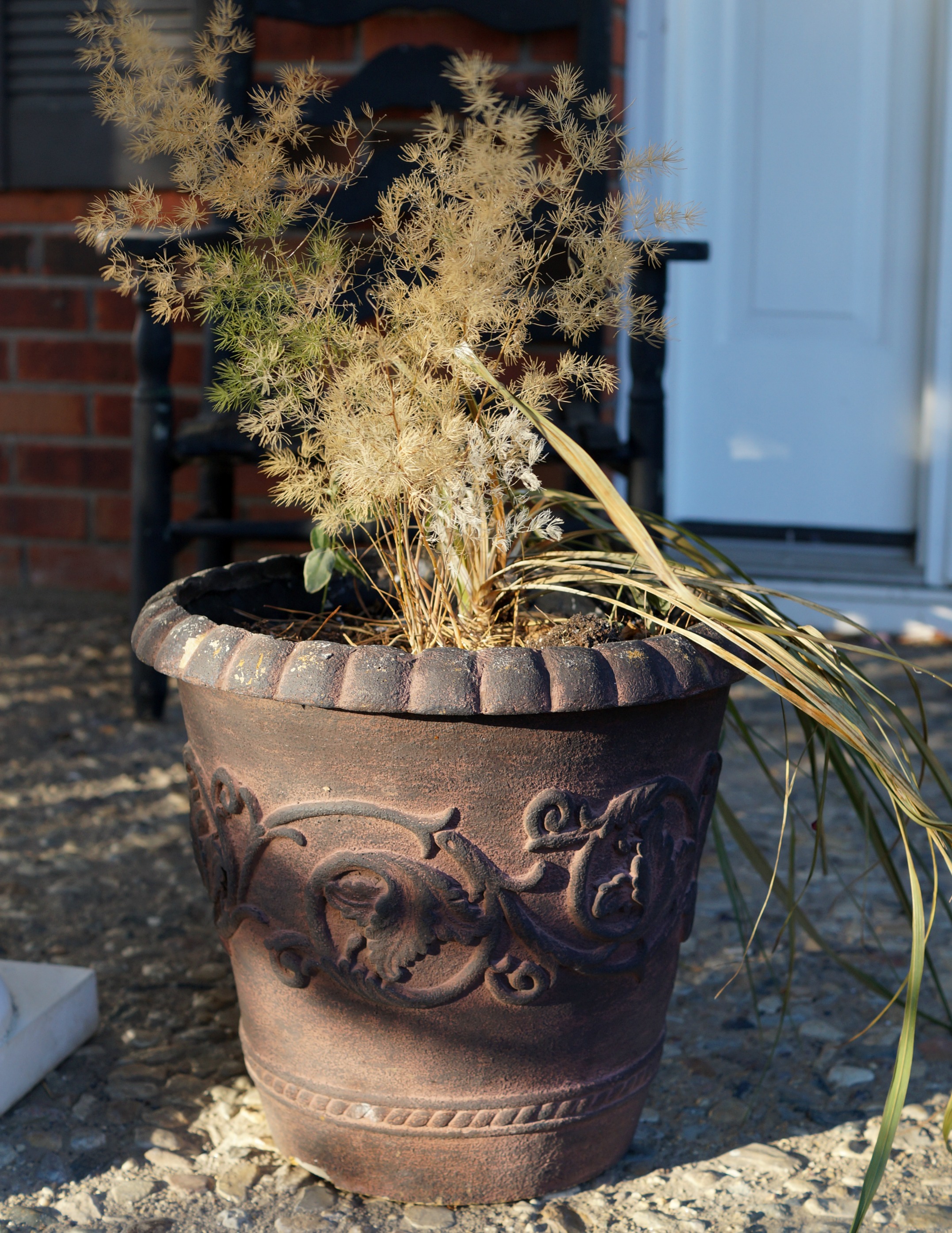 I tied a simple bow around the neck of a Solar Lamp* and added that to the pot.