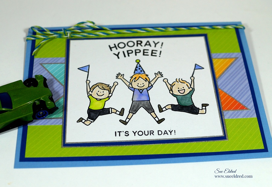 That is so cute!! Such a happy card. You don’t look like you can have 3 grandsons…:) The twine is such a cute addition. Nice job.
