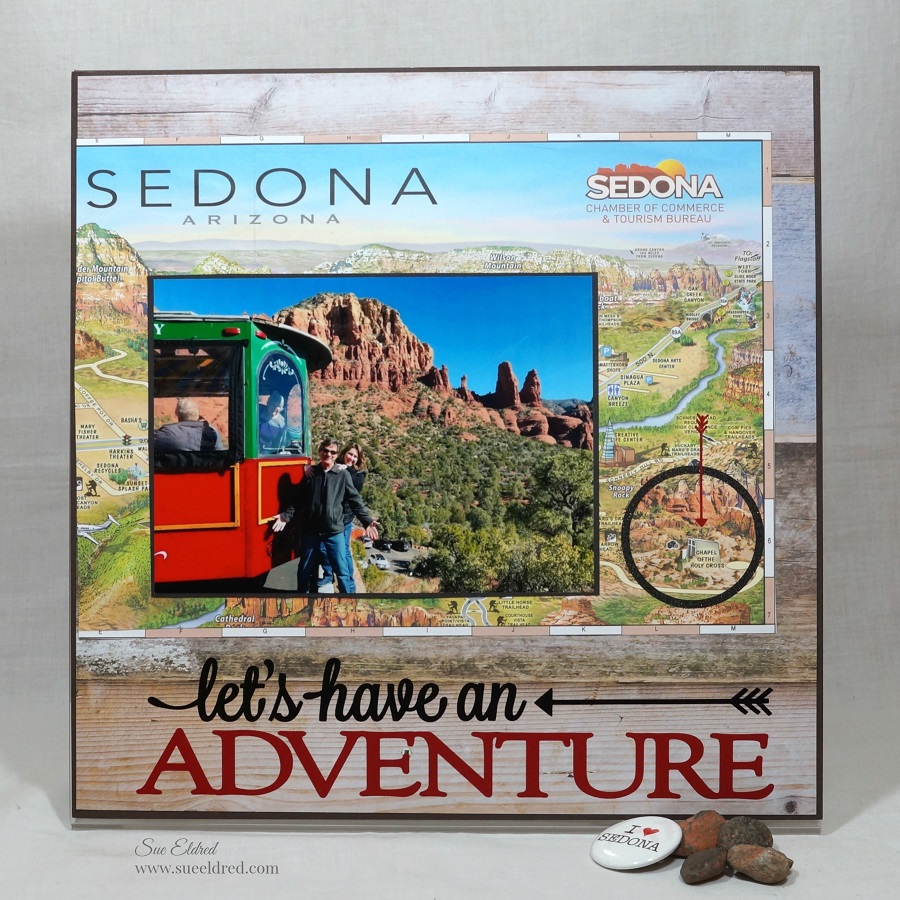 I started with a piece of woodgrain scrapbook paper and a Sedona map I picked up.