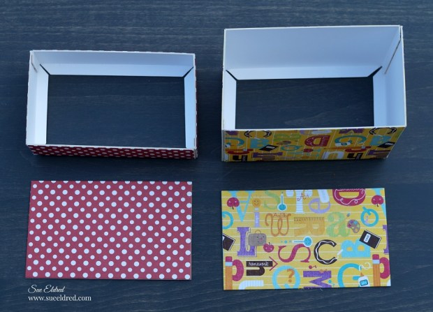 - Adhere the paper onto the chipboard. If you would like a design on the inside of the box, adhere coordinating paper on the other side of the chipboard.