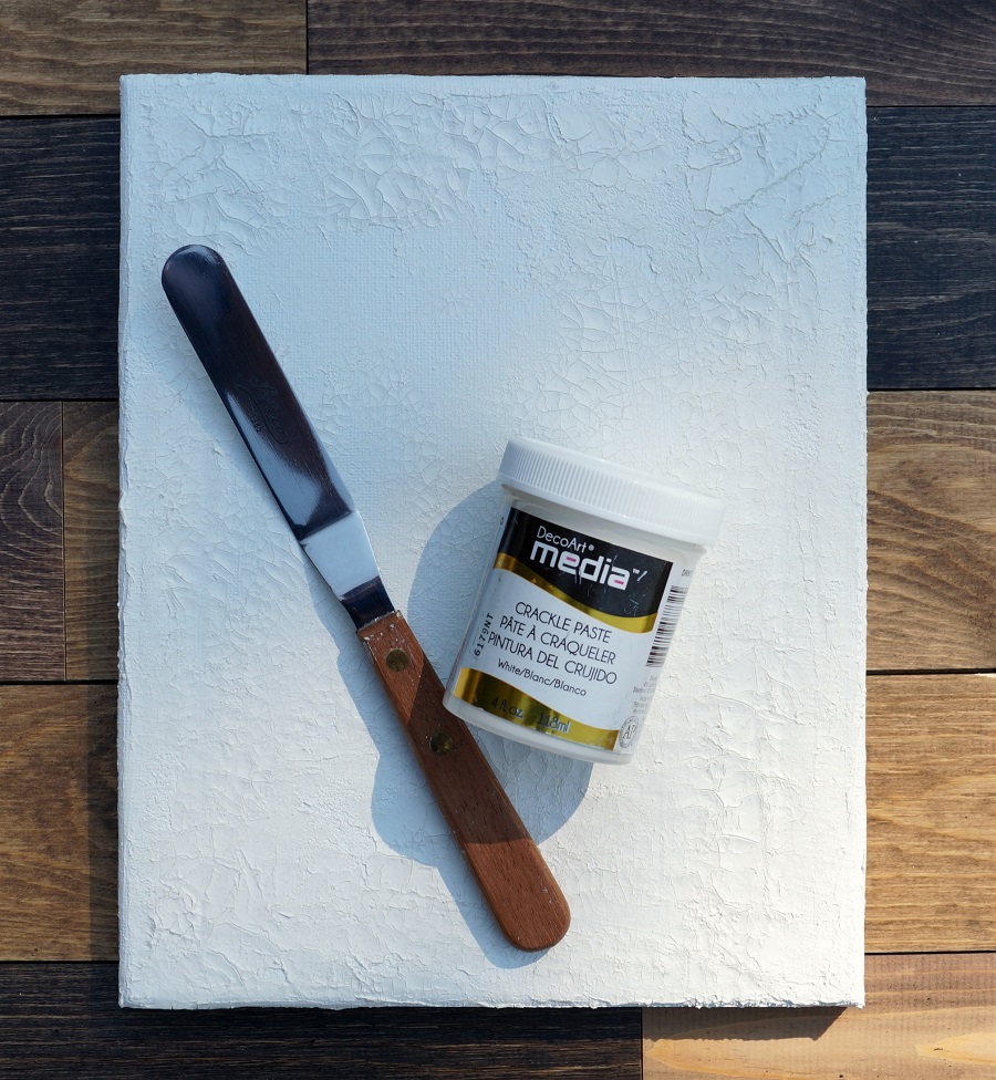- Apply Crackle Paste onto the entire canvas using a palette knife.