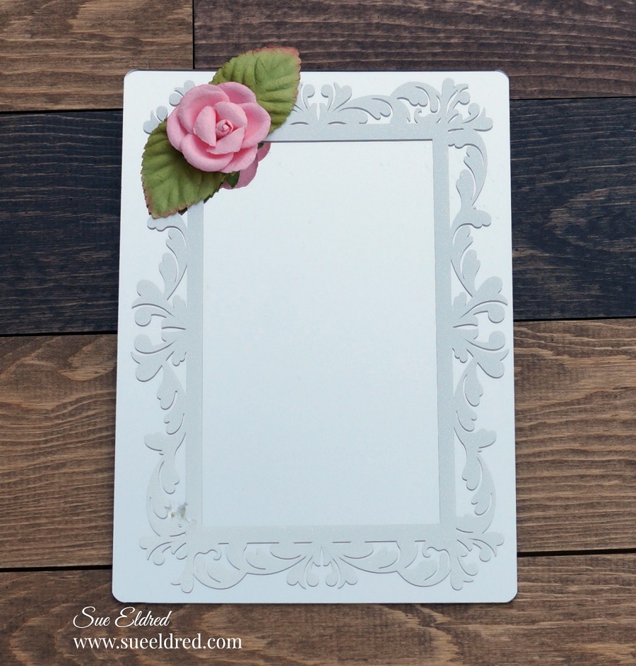 - Create a delicate scroll frame using white adhesive glitter vinyl, an SVG cut file, and an electronic die cutting machine.