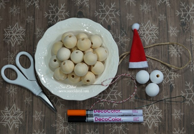 How to make a Snowman Santa Wood Bead Ornament