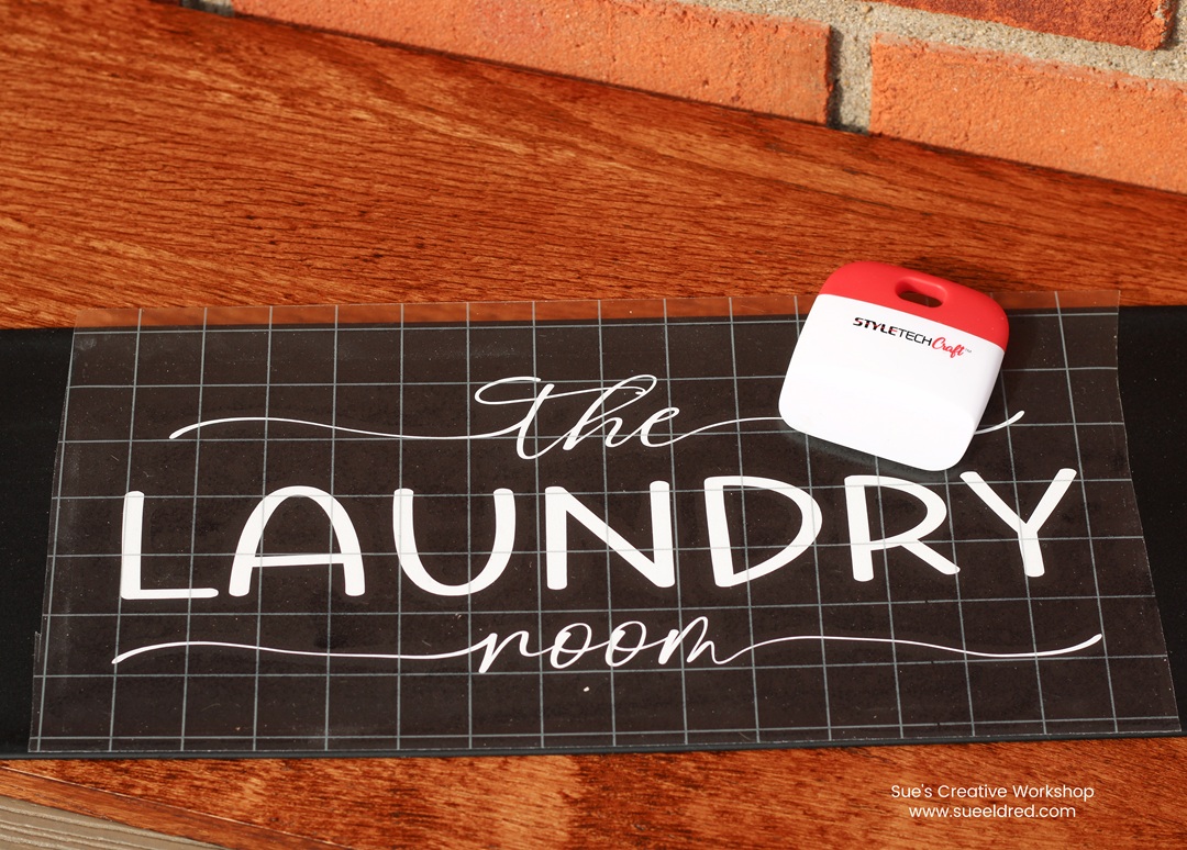 While I had my vinyl and machine out, I cut the words “laundry pods”.