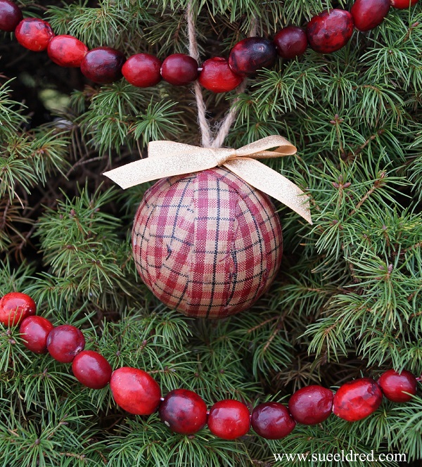 A simple homespun tree with strung cranberries and hand-made ornaments.