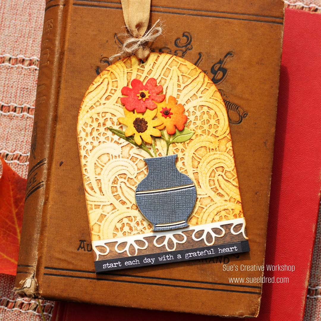 Made with Eileen’s new thinlet dies, this tag is bursting with