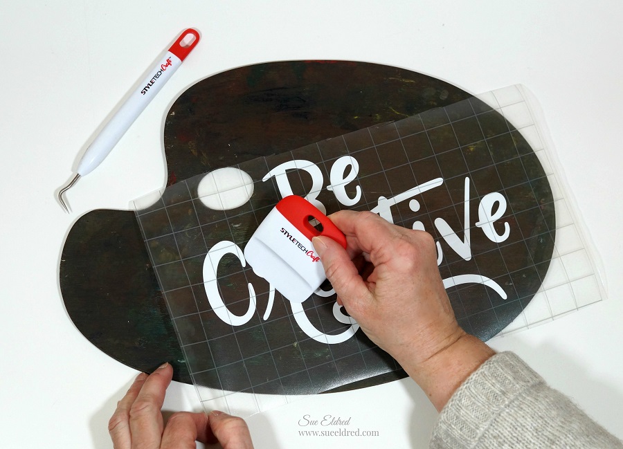 • Place a piece of Vinyl Transfer Tape* over the letters.  Rub over the letters using a vinyl scraper tool to help the vinyl cling.