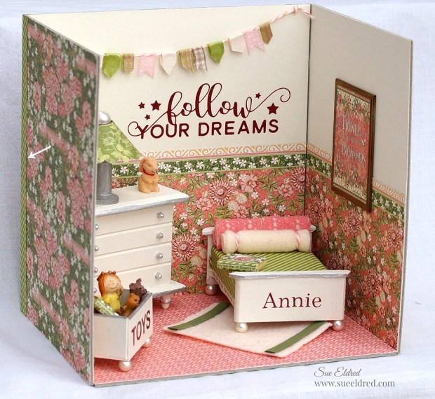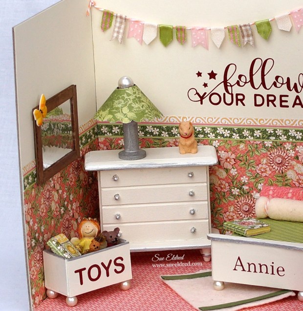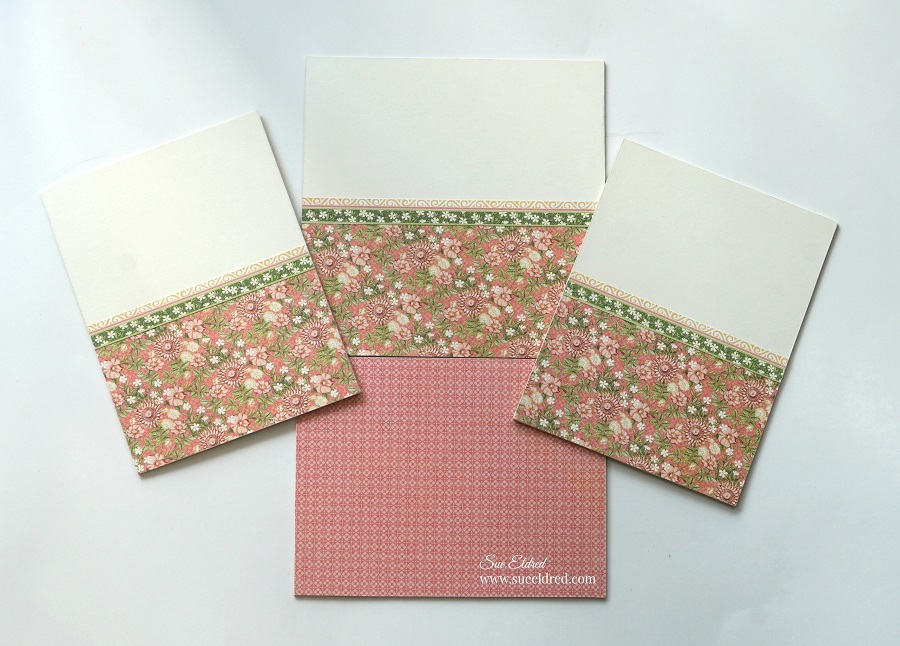 - Assemble a card base using coordinating decorative scrapbook paper.