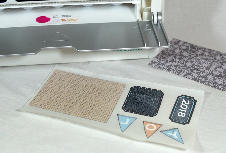 - Optional: For easier assembly, I used the Xyron Creative Station* to add adhesive to the back of the cardstock before die-cutting. (As the paper goes through the Xyron Creative Station*, it adds a complete layer of adhesive to the back.)