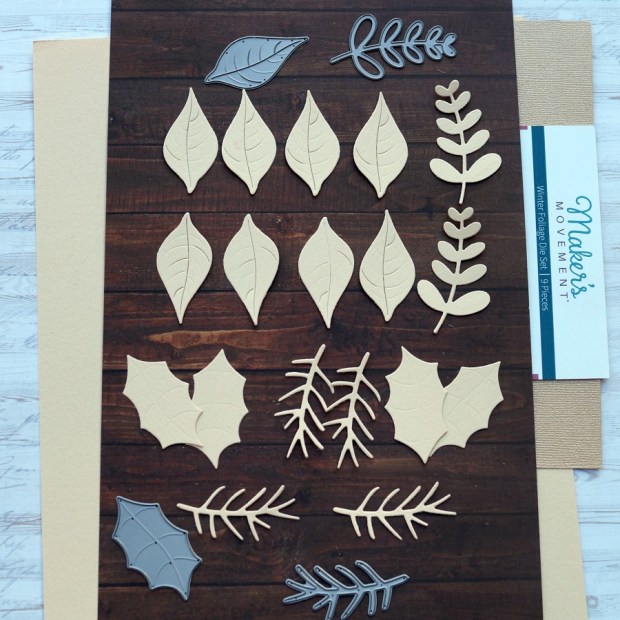 - Die-cut the pieces for the wreath, as shown above, using the Wreath Die Set and green cardstock.