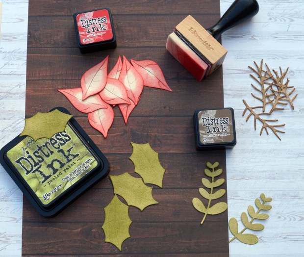 - Using the Ink Blending Tool and Peeled Paint Distress Inkpad, generously ink all over the front of each die-cut piece.