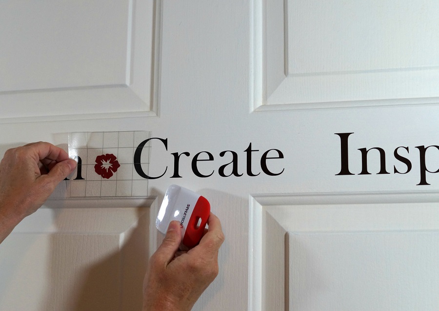 - Cut a piece of Vinyl Transfer Tape* to fit over the vinyl words.