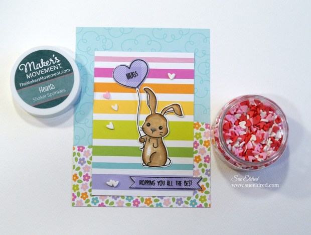 - Using only red and white heart sprinkles, fill the inside of the frame with the sprinkles. Be careful not to overfill so that there is room to shake.