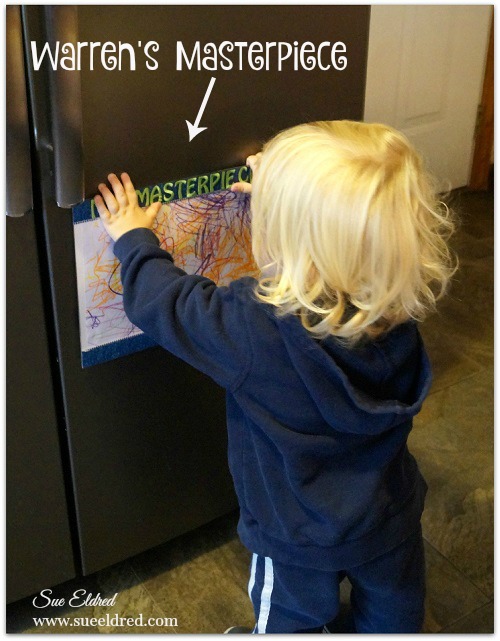 I glued the letters onto the frame (since I couldn’t iron them) and added a couple magnet strips