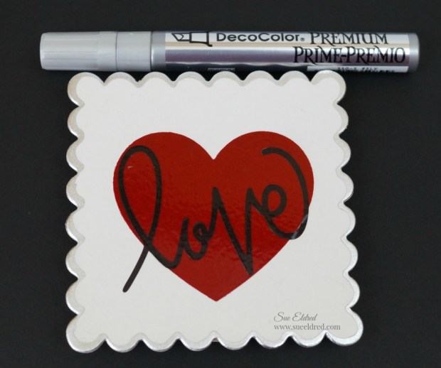 - I edged the sides of my coaster in silver, using a Silver Leaf Paint Pen*