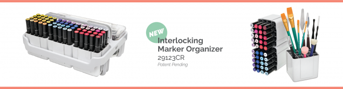 An interlocking wheel base for the craft caddy and the Interlocking Marker Organizer.