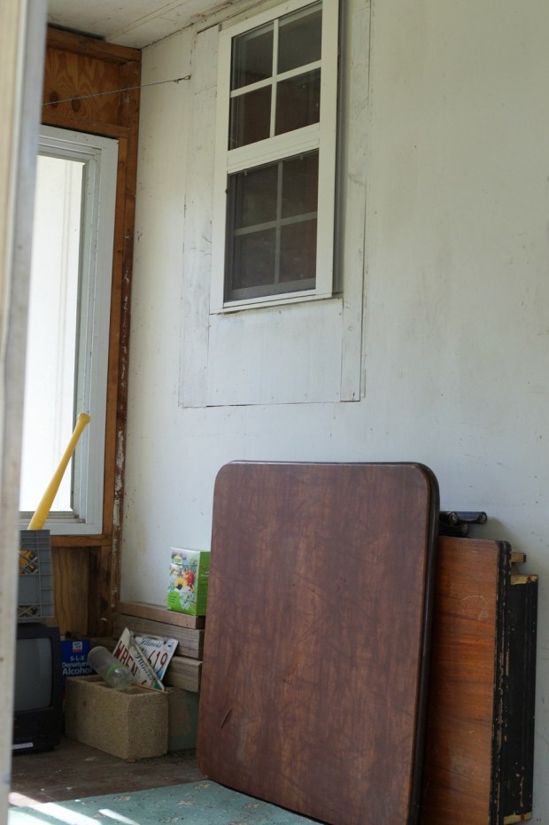 We emptied out the porch and removed all the windows so they could be thoroughly cleaned.
