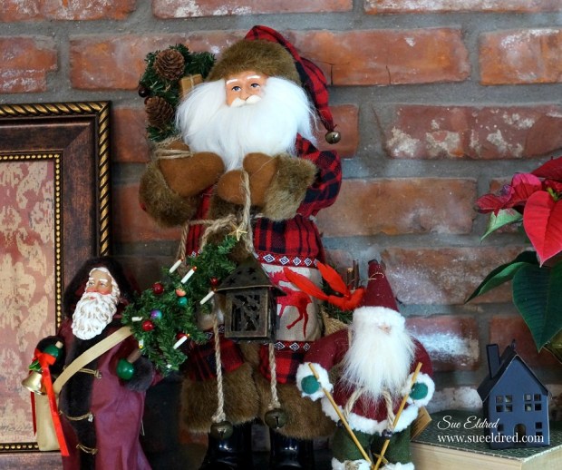 I’ve got Vintage Santas, Skiing Santas, Golfing Santas, and Toymaking Santas. I scatter them randomly around the house.