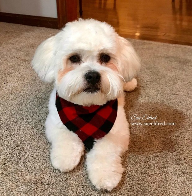 Even my sweet little pup, fresh from the groomers, matches my decorations.