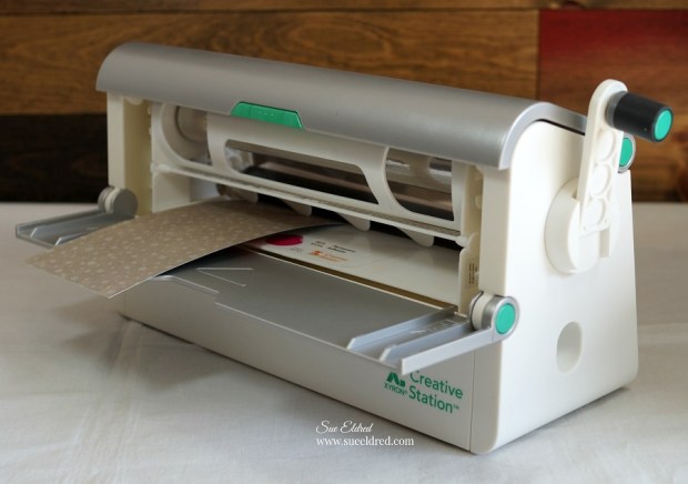 , crank the handle to run the paper through the machine. As it moves through the Xyron CreativeStation*