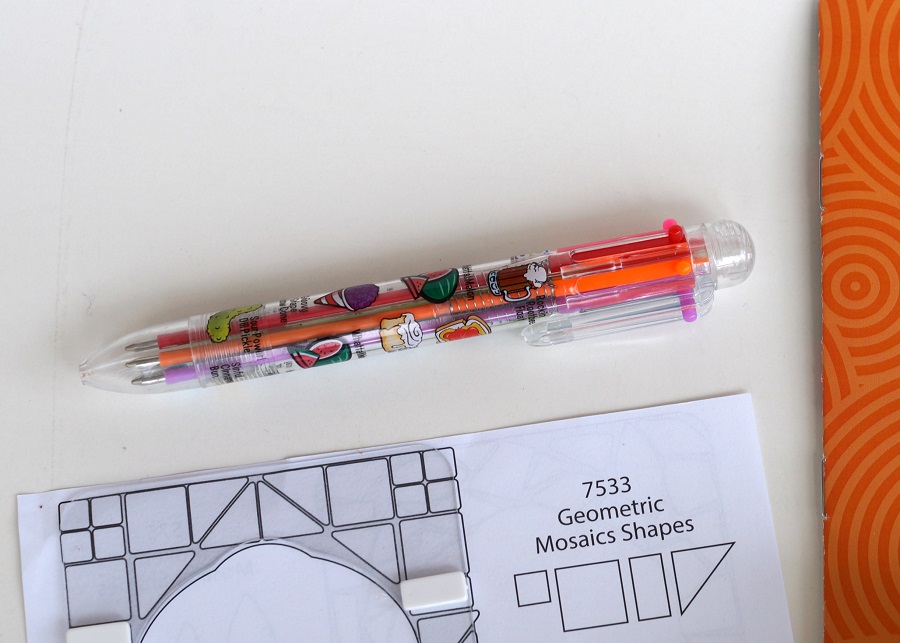The theme for April was Mosaics…the April Orange Art Box included a wooden box, a large bag of mosaics, mod podge, brush, book mark, door knob hanger, tissue paper squares, 6 color scented pen and a folder of ideas, tips, patterns and instructions.