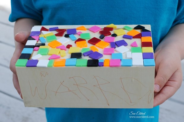 Nick’s Box with a combination of mosaics and decoupaged tissue paper.