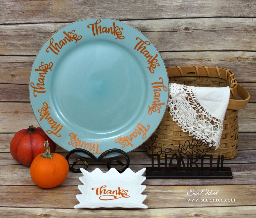 , cut the words “Thankful & Blessed” out of StyleTechCraft Champagne Luster Adhesive Vinyl*. I sized my words to fit on a 4″ x 5 ½” piece of mat board*.