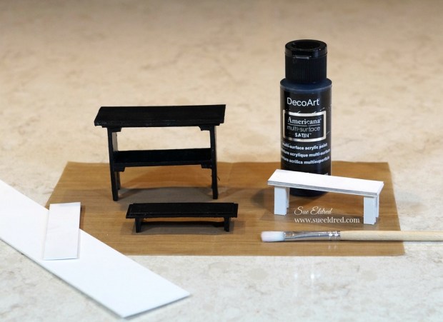 - Cut and adhere a 4″ strip of paper to go horizontally across the center of the background.