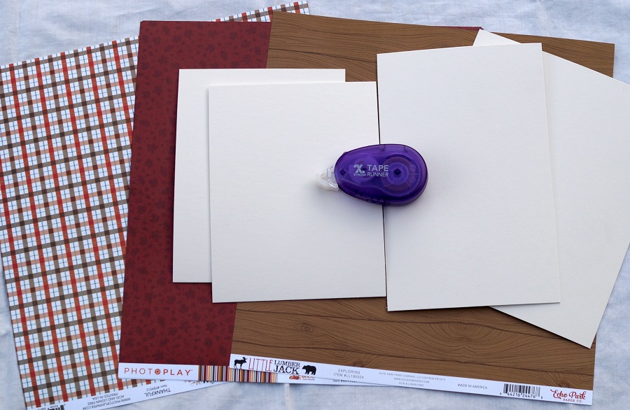 - Choose three pieces of coordinating 12″ x 12″ scrapbook paper to use in the frame.