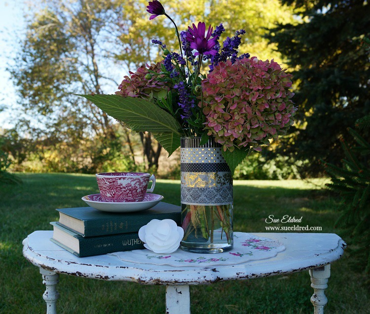 - Punch a small hole at the end. Tie the banner die cut around the neck of the bottle with a piece of red and white twine.