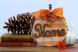- Add a screw eye on the top of the wood slice for twine and ribbon.