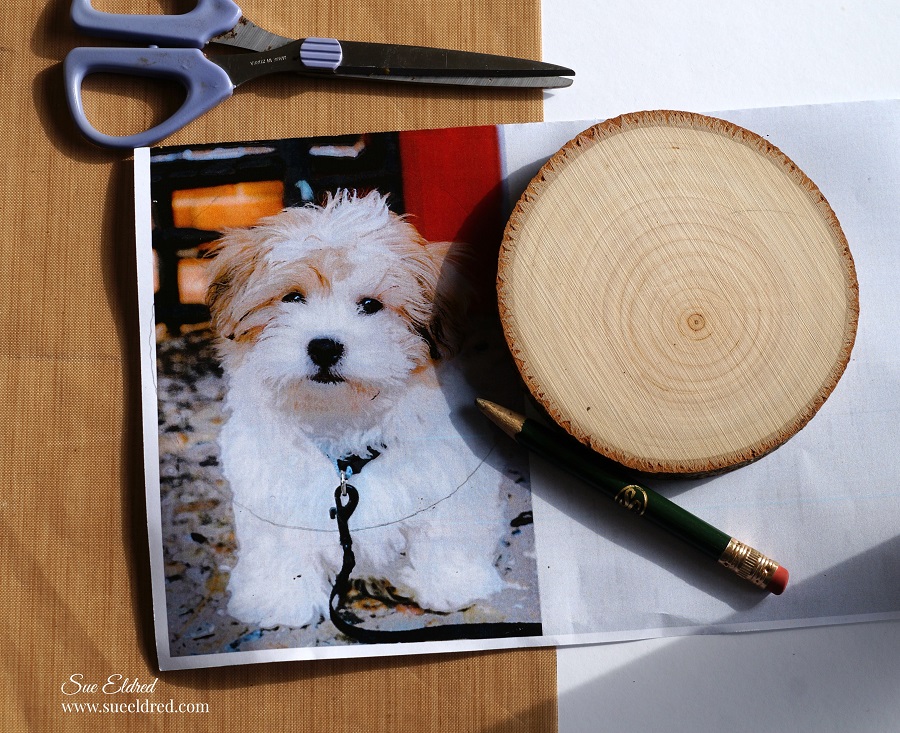 - Lay the wood slice over the photocopy and trace around the wood slice. Cut around the traced lines.